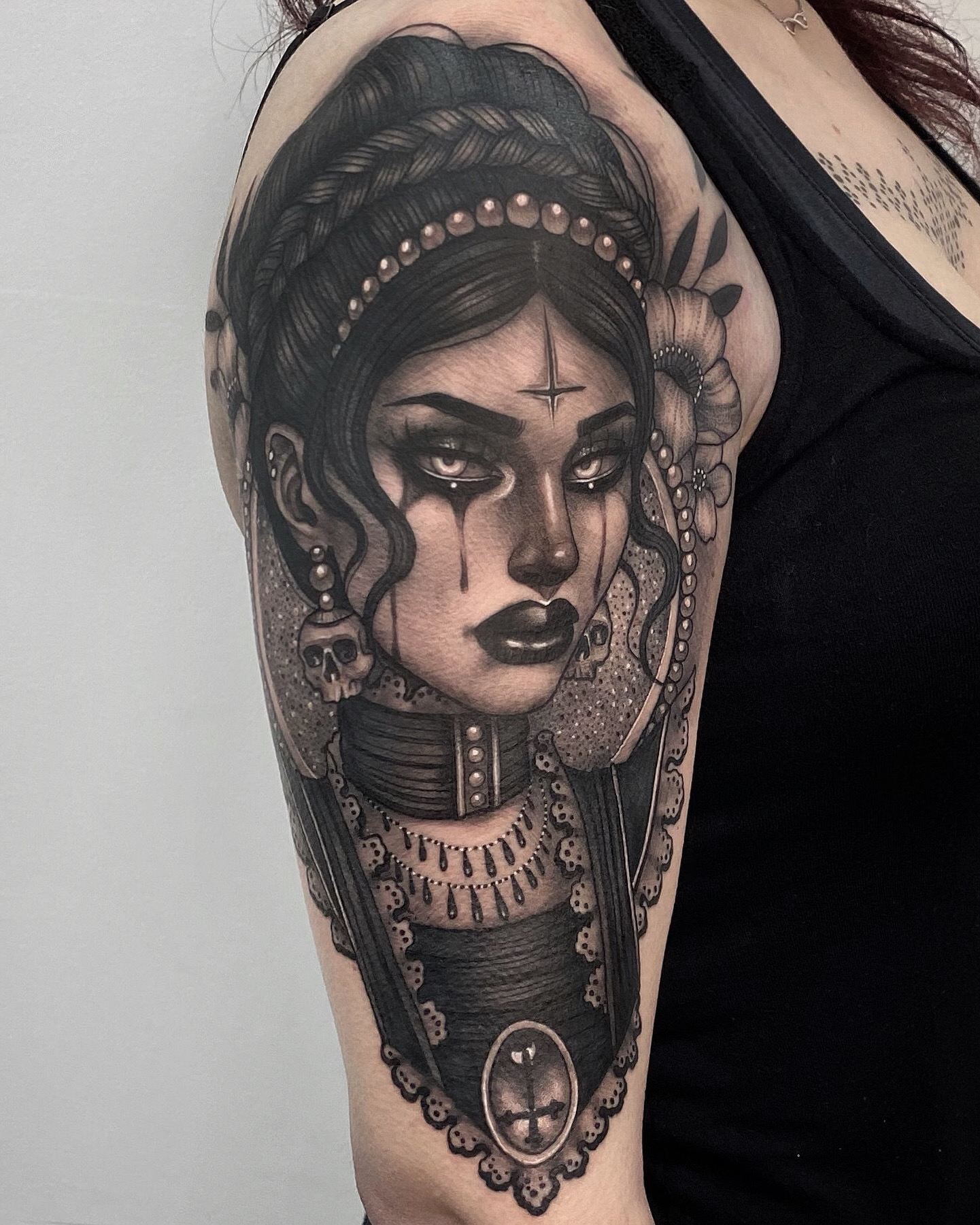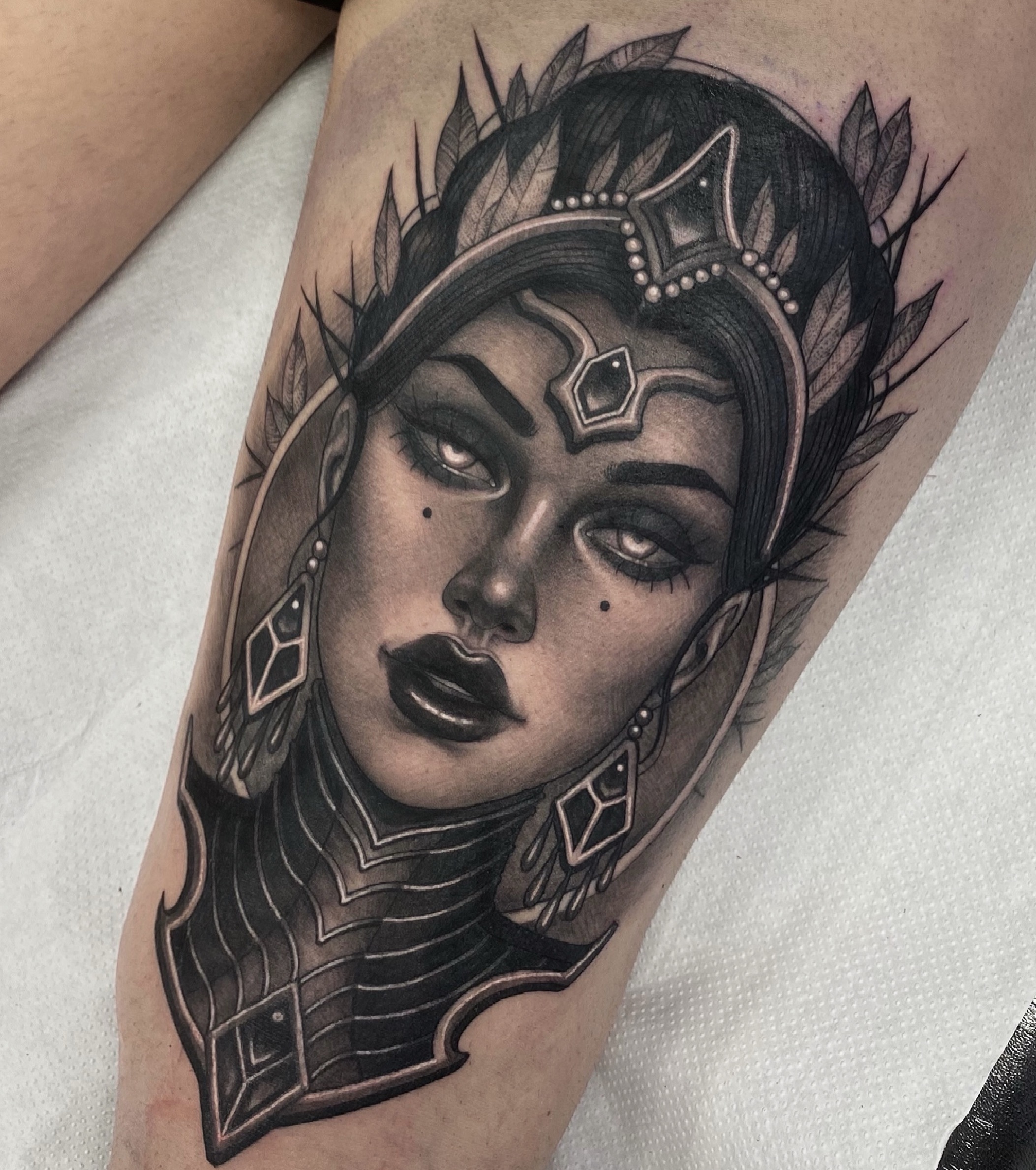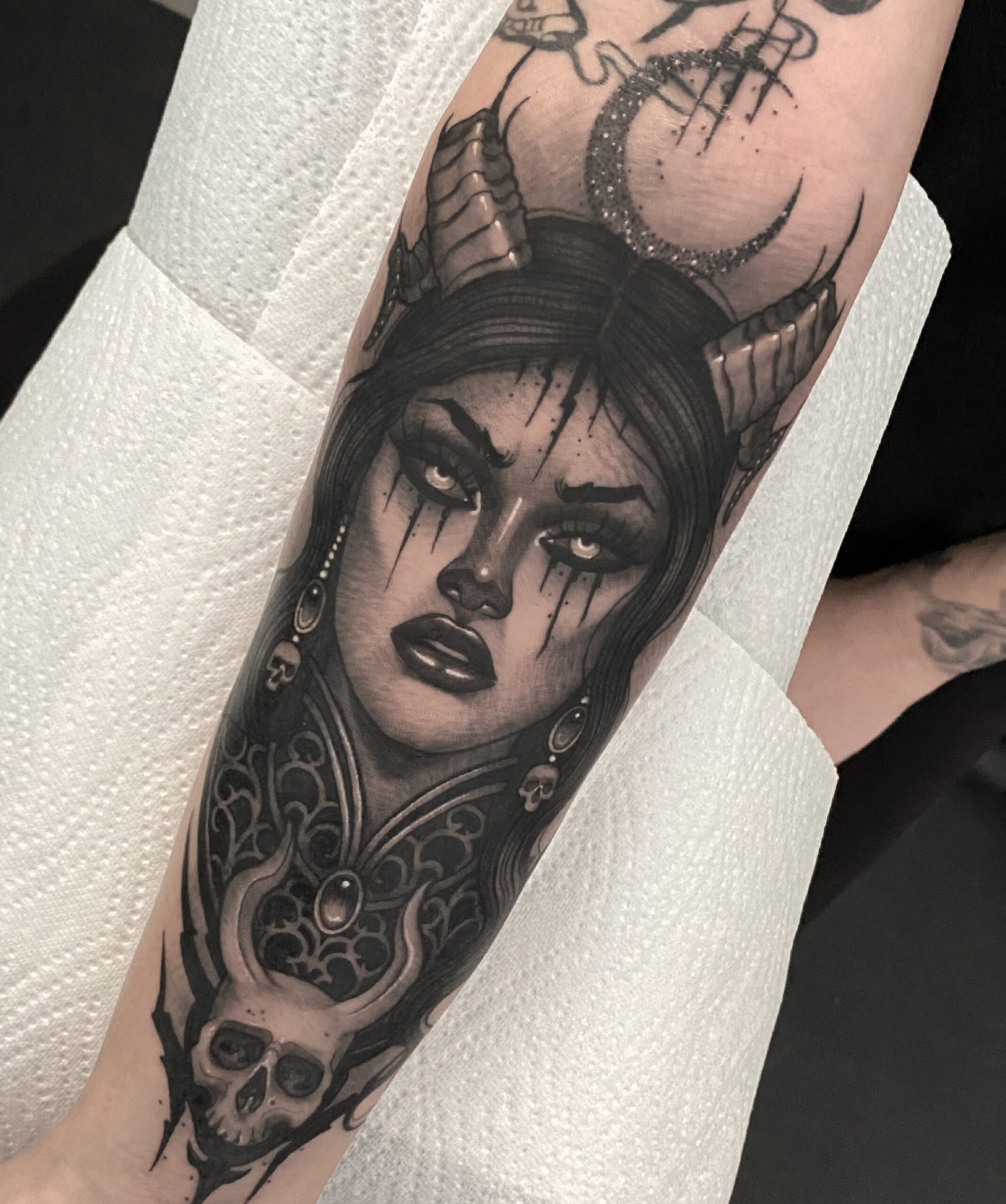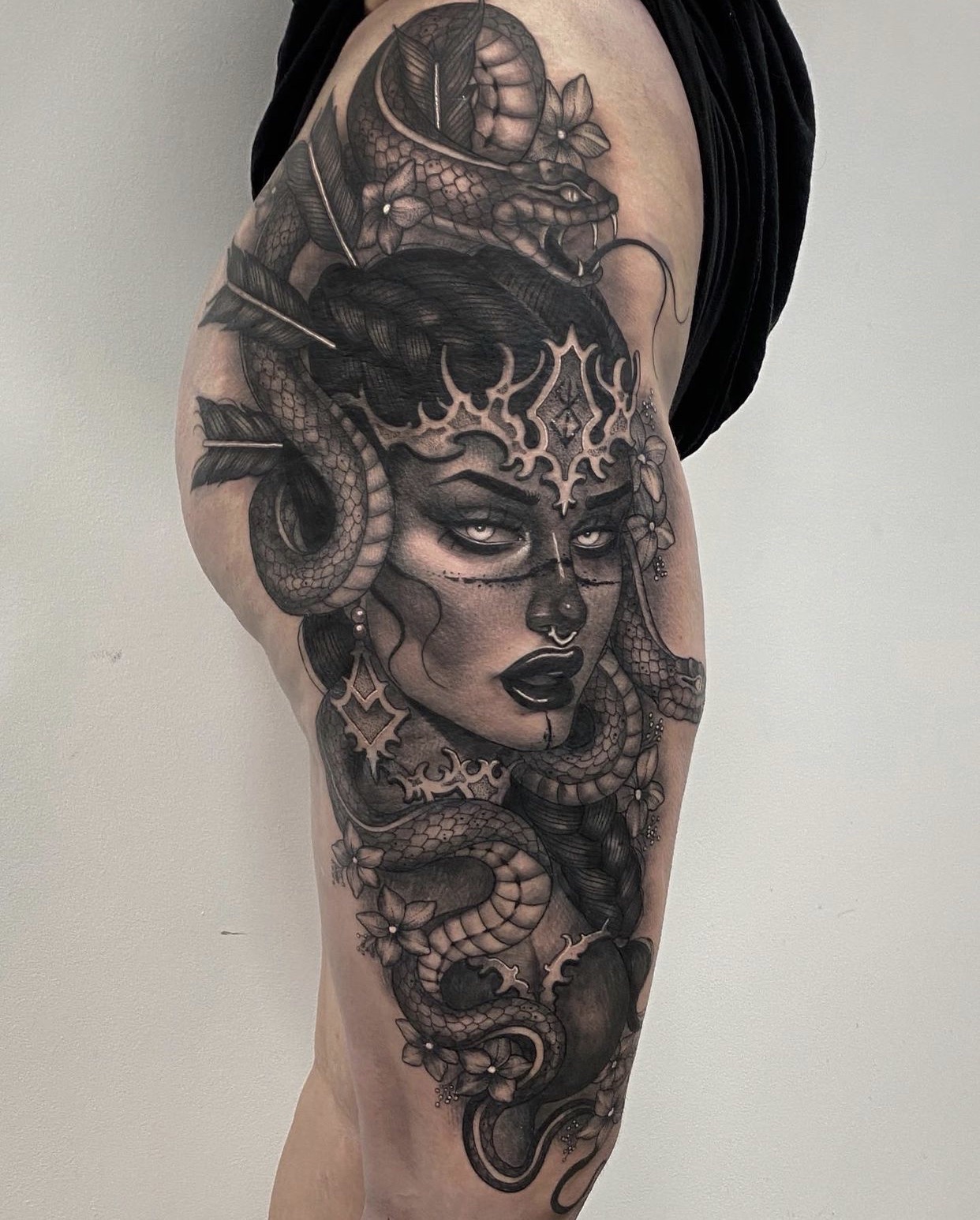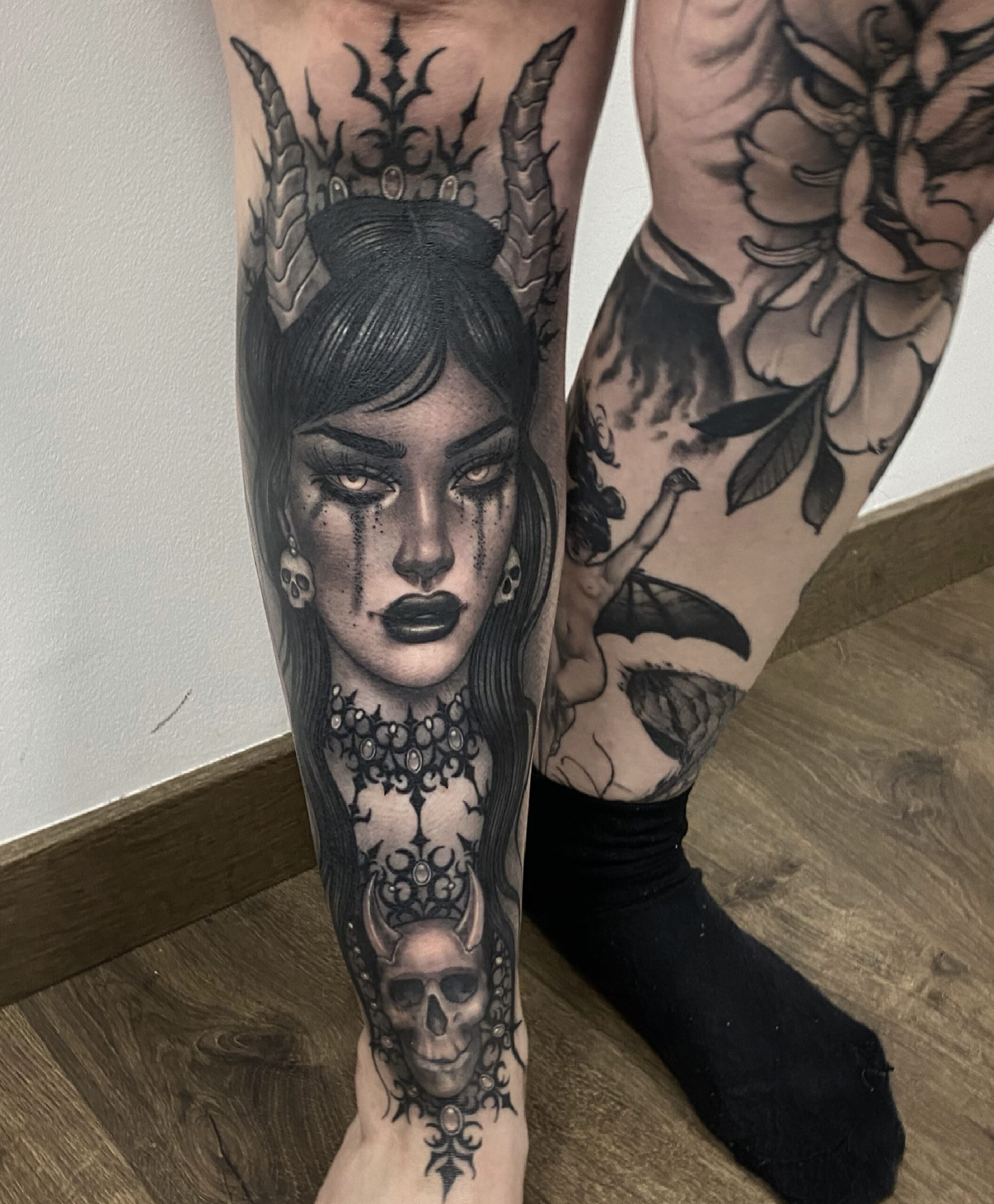 Ccyle is a French tattoo artist who has made Barcelona her home for the past 5 years. With 10 years of tattooing experience, she has honed her craft and developed a black and grey Neo-traditional style. Ccyle’s artwork is characterized by powerful and captivating female figures, showcasing her artistic prowess and unique vision.