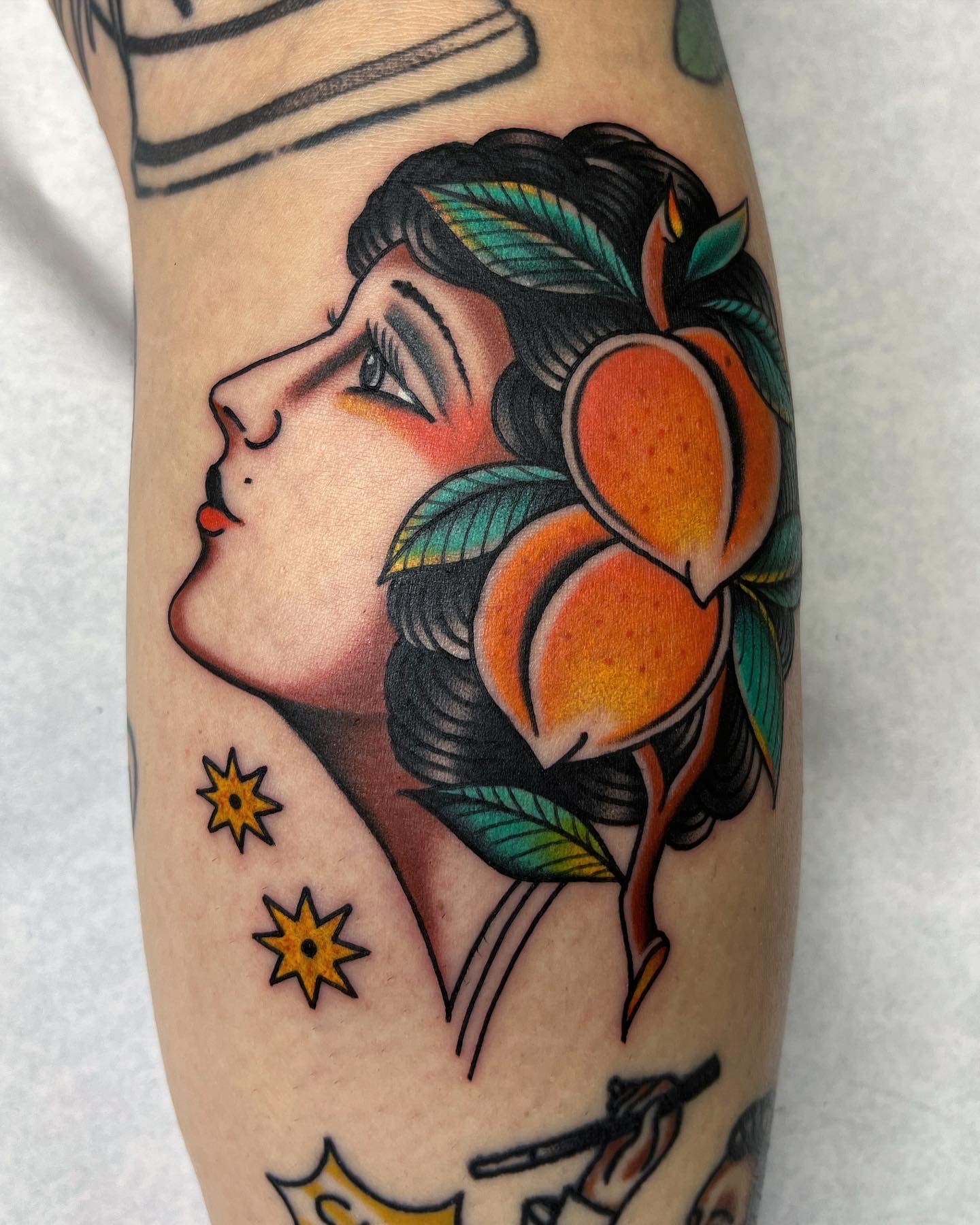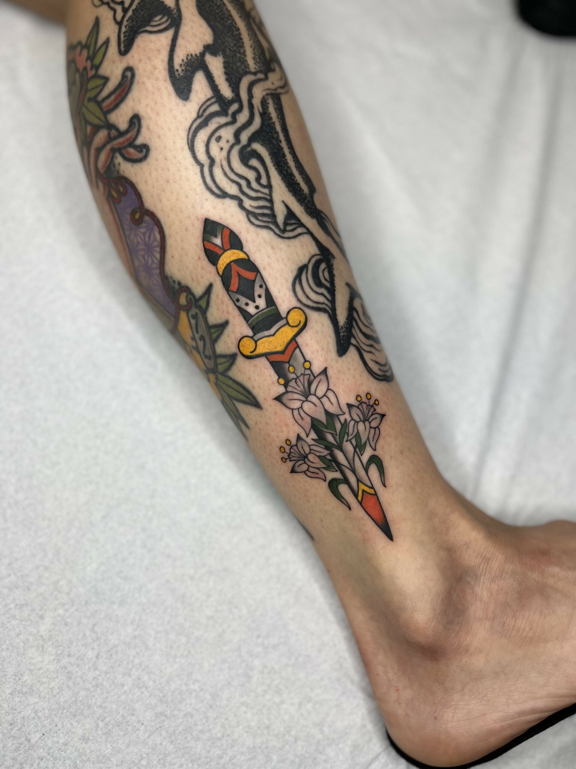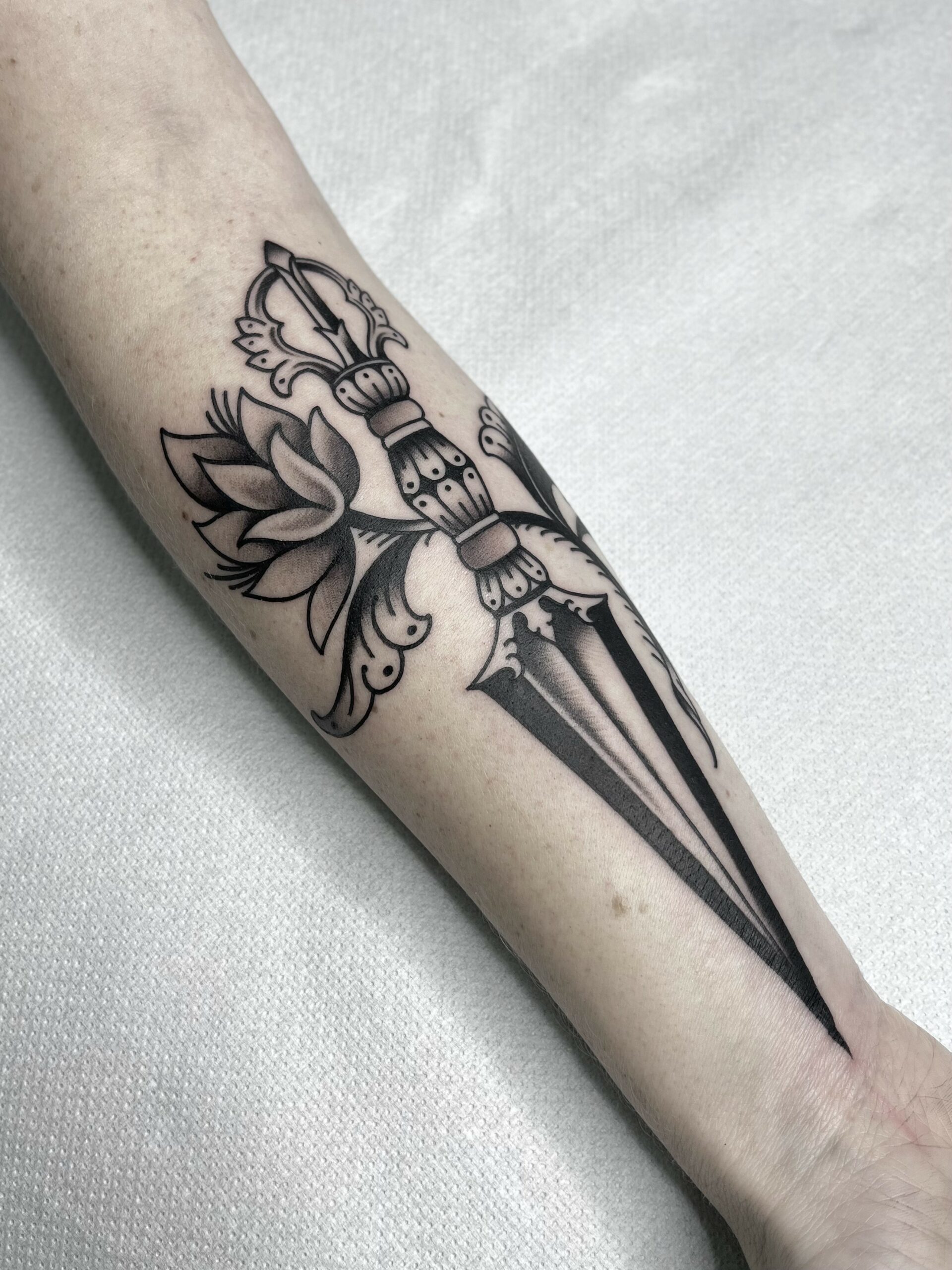 Recurre a multiples recursos de distintas culturas y modalidades, como por ejemplo la pintura tibetana, el diseño, pasando por artistas como Charlotte Perriand, Kandinsky, Miró, Calder, Burle Marx y muchos más. Su intención siempre es sacar algo lo más limpio a nivel diseño y técnico en cada uno de sus tattoos y pinturas. Atención al detalle y mucho cariño es lo que se refleja en cada uno de sus trabajos!