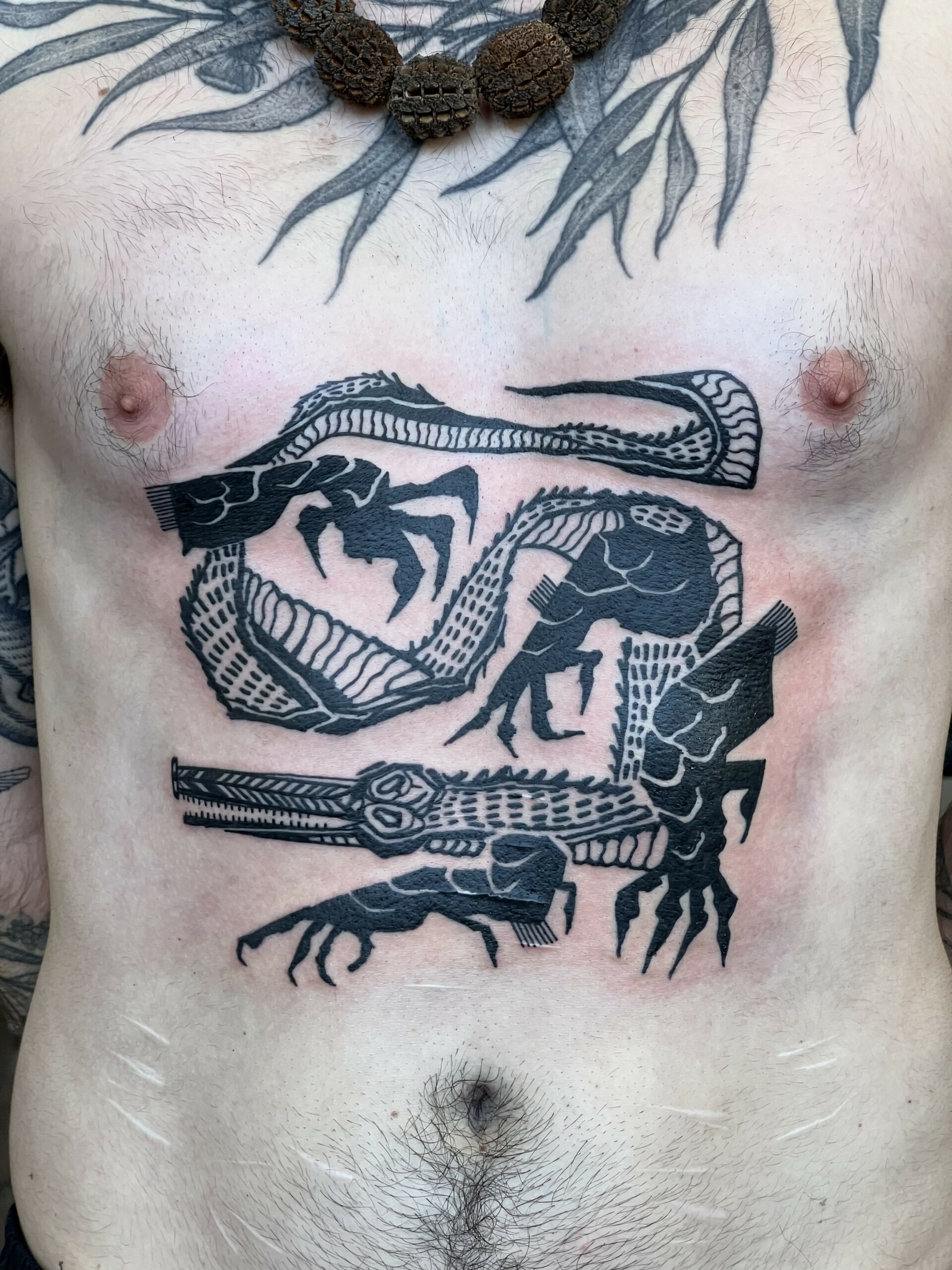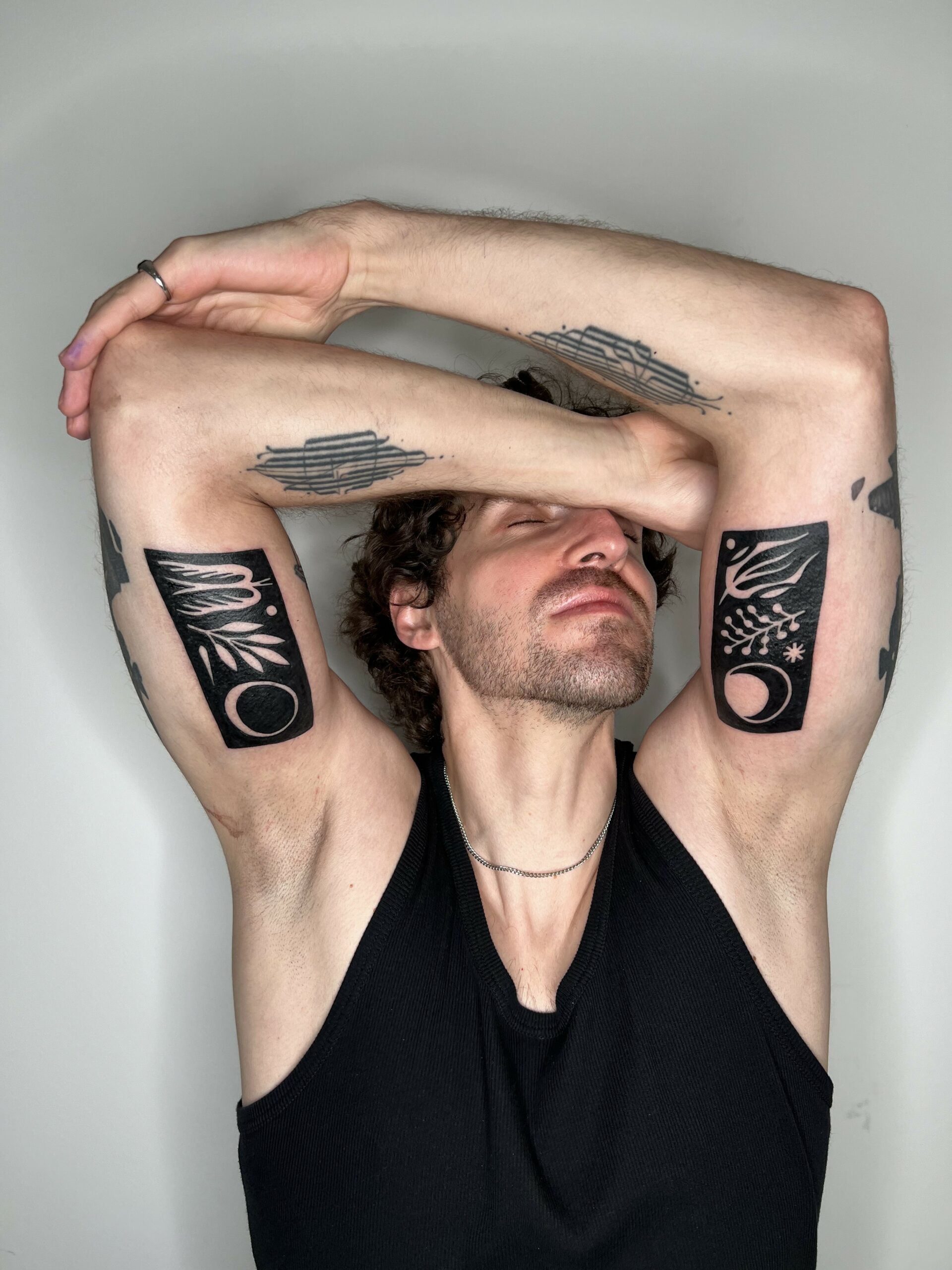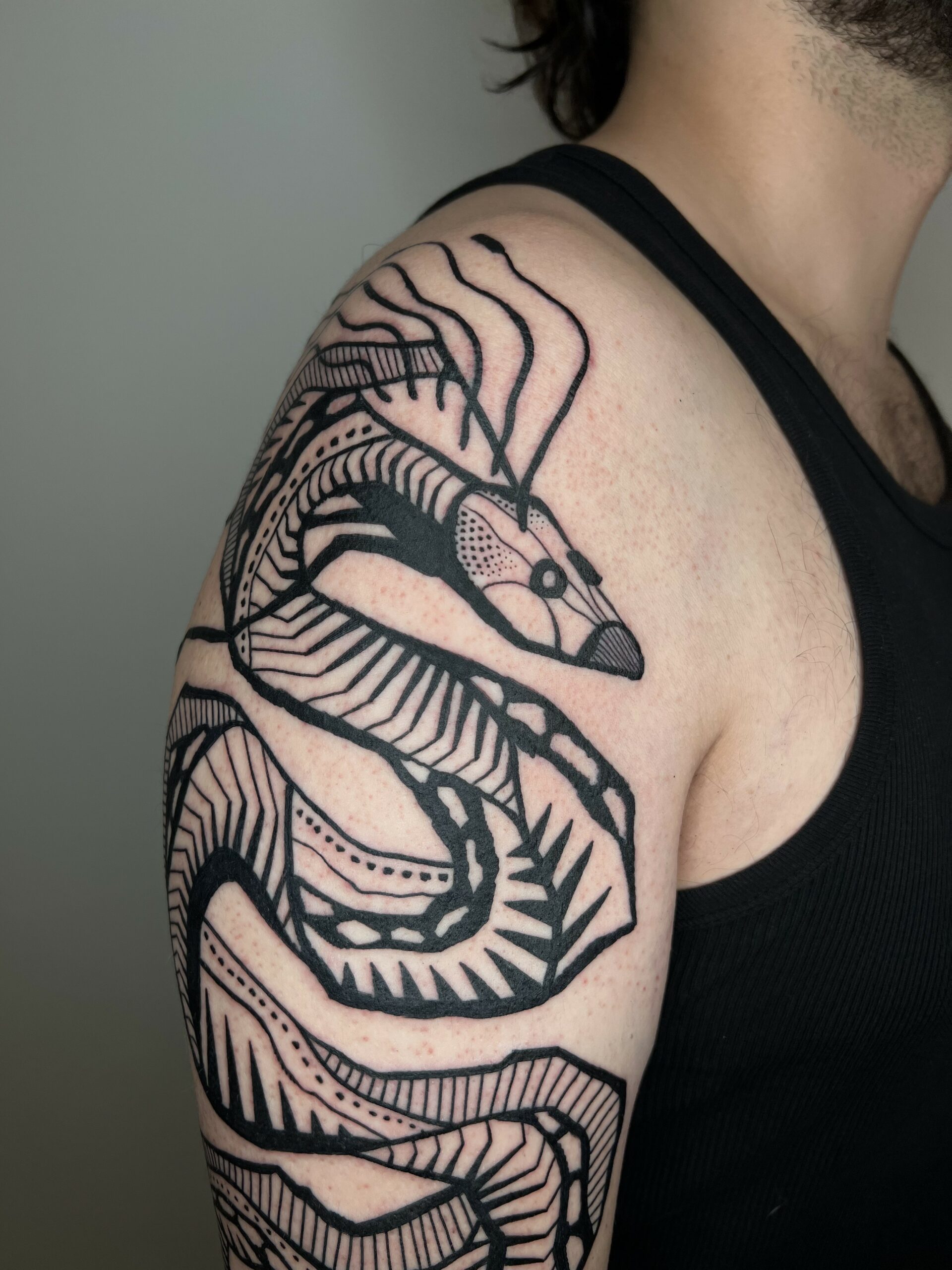 Super Roger se especializa en tatuajes no realistas. Originario de Sabadell pero viviendo en Barcelona, trabaja siempre con negro, texturas, líneas gruesas o finas, a veces geométricas y otras veces más orgánicas y fluidas. Siempre dibujando, y la mayor parte del tiempo inventando criaturas, formas y animales locos. No importa la escala o el concepto, siempre está feliz de experimentar y crear juntos.