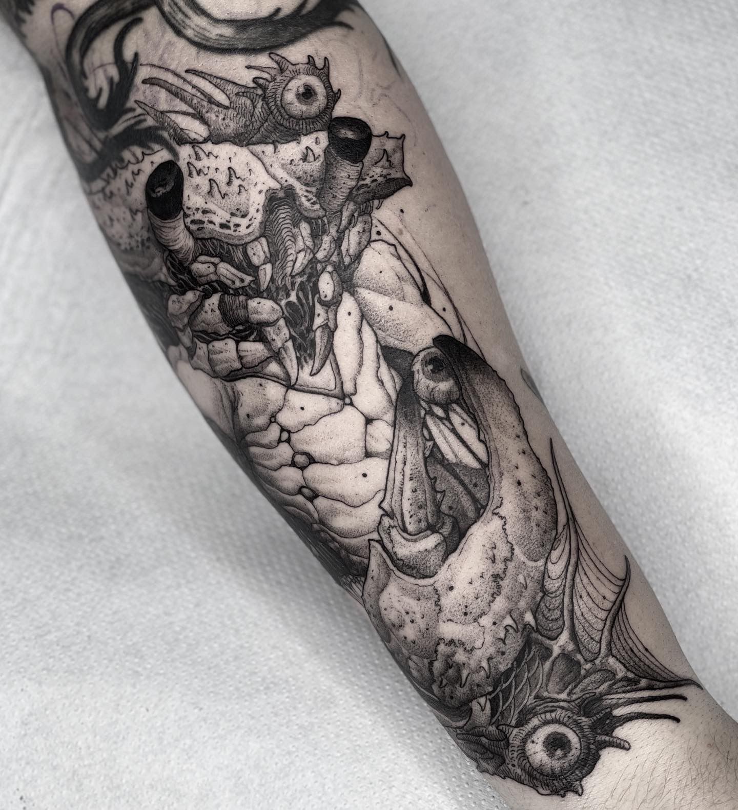 Born in Barcelona, El Uf is a tattoo artist and illustrator with 23 years of experience, specializing in monsters and dark themes, realism, cartoons, and rich textures.